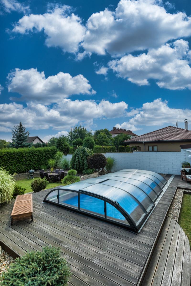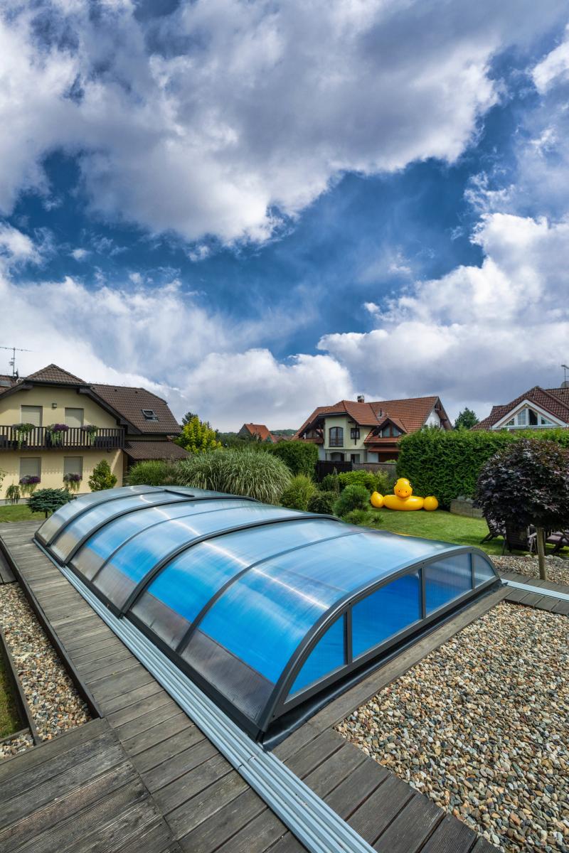 Die klimatischen Bedingungen in unseren Breitengraden sind in den Sommermonaten oft unbeständig. Schlimmstenfalls kann dank des Wetters die Urlaubsatmosphäre schneller vorbei sein, als Sie angenommen hatten. Mit der Schwimmbeckenüberdachung werden Sie das Vergnügen im Schwimmbecken viel länger genießen als Ihr Nachbar und Sie erhalten gleichzeitig eine kostenlose Wassererwärmung. Die Wassertemperatur kann um bis zu 8 °C höher sein.