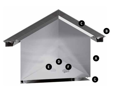 A) Edelstahlwand (2,5mm) mit Verstärkung (2mm)